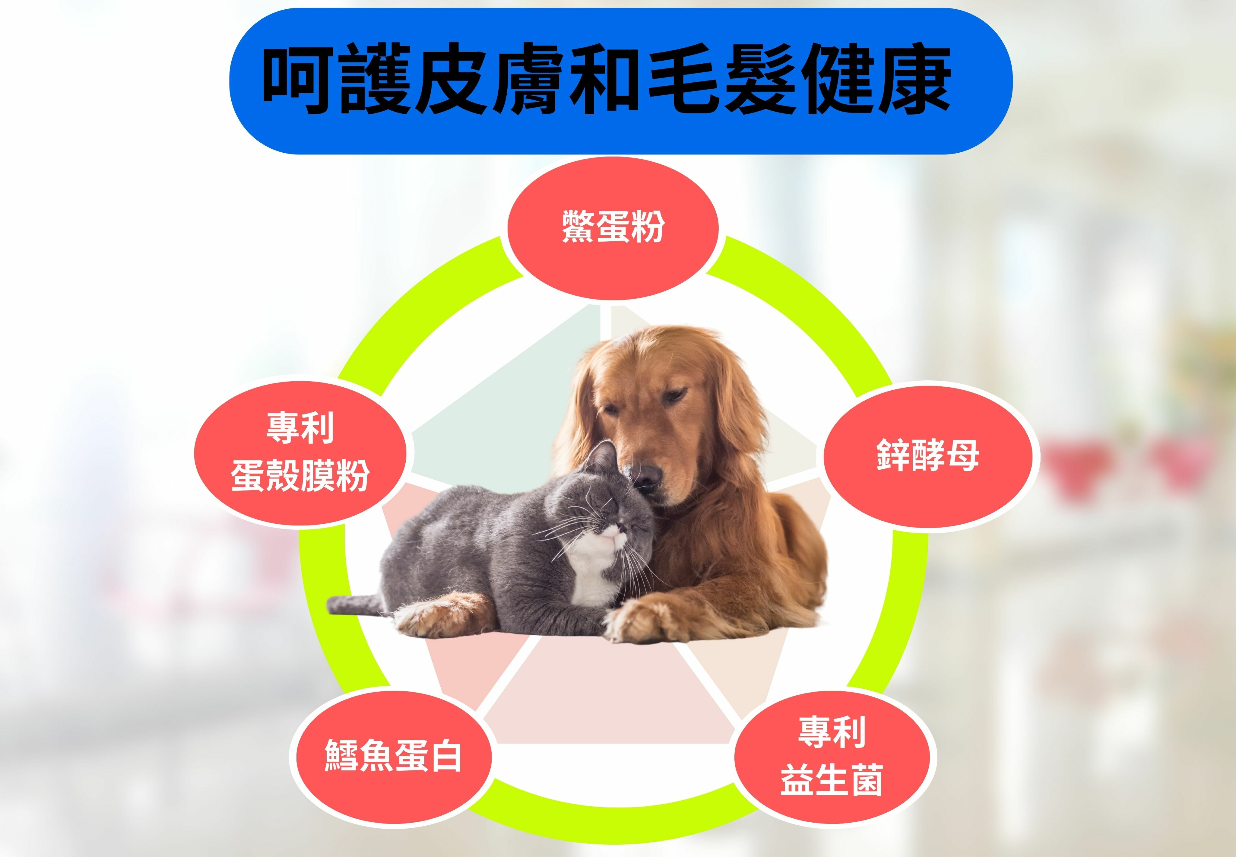 補充寵物毛髮所需的營養養素及微量元素,減少乾燥發炎等不良